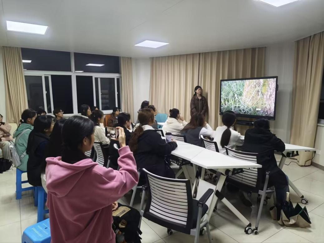 为深刻了解中国红色革命文化,学院邀请校级 “十佳社会实践团队”获得者“井冈星火”医心剧本创作团队分享暑期社会实践经验。团队远赴全国青少年井冈山革命传统教育基地,通过专题课堂、情景教学、实地体悟等多元形式,系统学习井冈山精神内核。分享中,团队成员详细介绍了团队自主开发的以南昌起义等真实历史为背景的红色剧本杀及创作过程,讲述了如何通过沉浸式场景让参与者代入角色,在互动中深化对红色文化的理解,同时分享了重走挑粮小道、学编红军草鞋、自制红军餐等实践经历,展现了如何以年轻人喜爱的创新形式传承红色基因,感悟革命先辈的坚定理想信念与艰苦奋斗精神。