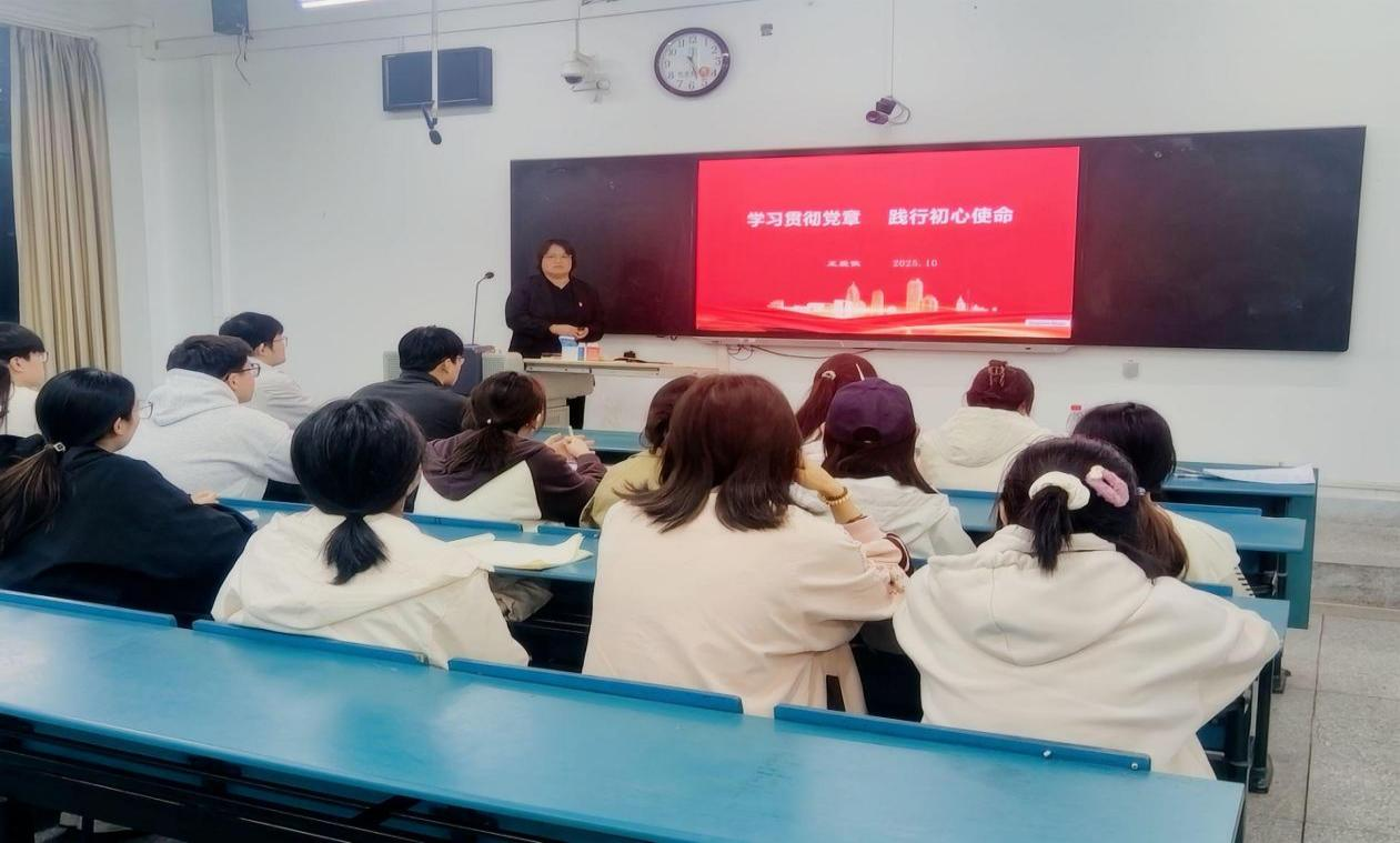 学习贯彻党章,践行初心使命。学院党委书记王爱侠同志为入党积极分子讲授“学习贯彻党章 践行初心使命”专题党课。课上系统回顾了党章历次修订的发展脉络,重点阐释了党的性质宗旨和指导思想,明确指出中国共产党人"为中国人民谋幸福,为中华民族谋复兴"的根本初心和使命任务。课堂详细讲解了党员发展工作的规范化流程,即"申请入党—入党积极分子—发展对象—预备党员—正式党员"的完整程序,并通过焦裕禄同志扎根兰考、吴孟超同志坚守手术台深耕肝胆外科等先进典型事例,教育引导入党积极分子端正入党动机,自觉以党员标准严格要求自己,以实际行动积极向党组织靠拢。