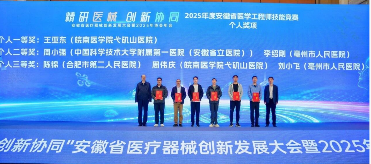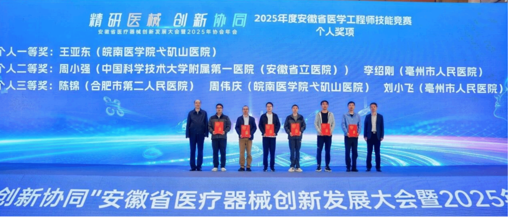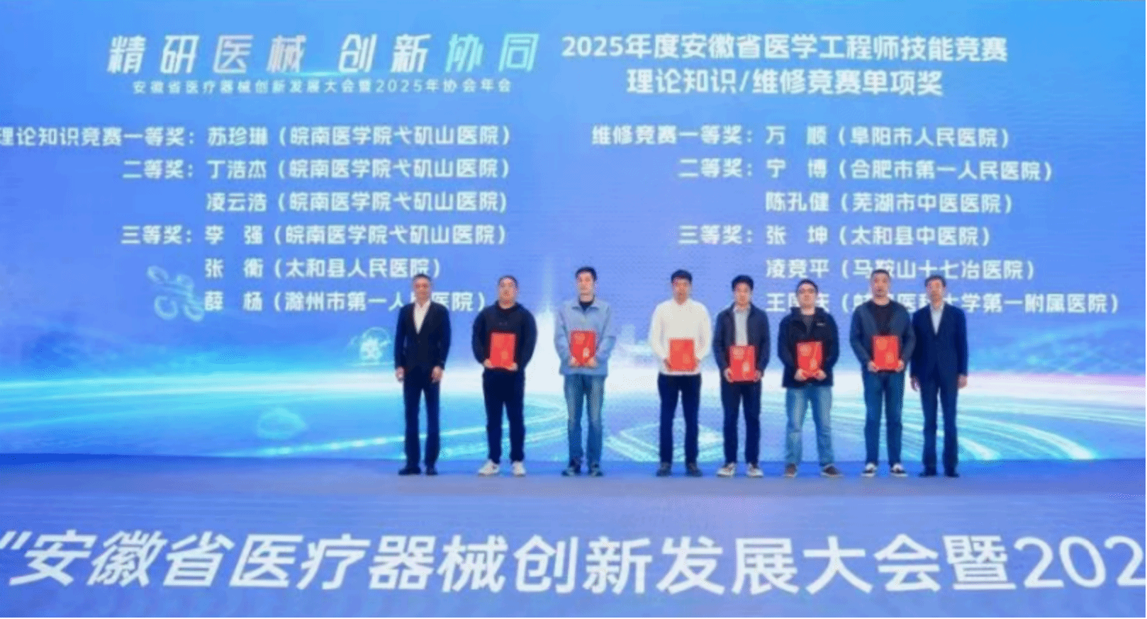 近日,安徽省首届医学工程师技能竞赛决赛于合肥顺利收官。本次竞赛经安徽省卫生健康委、安徽省总工会审批立项,由安徽省医学装备质量控制中心主办,系省内首次面向医学工程师技能举办的省级赛事,旨在搭建医学工程领域的交流平台,提升从业人员的专业素养。我校医学影像学院医学装备学教研室教师组成的代表队在比赛中表现优异,从众多参赛队伍里脱颖而出,荣获多项重量级奖项。