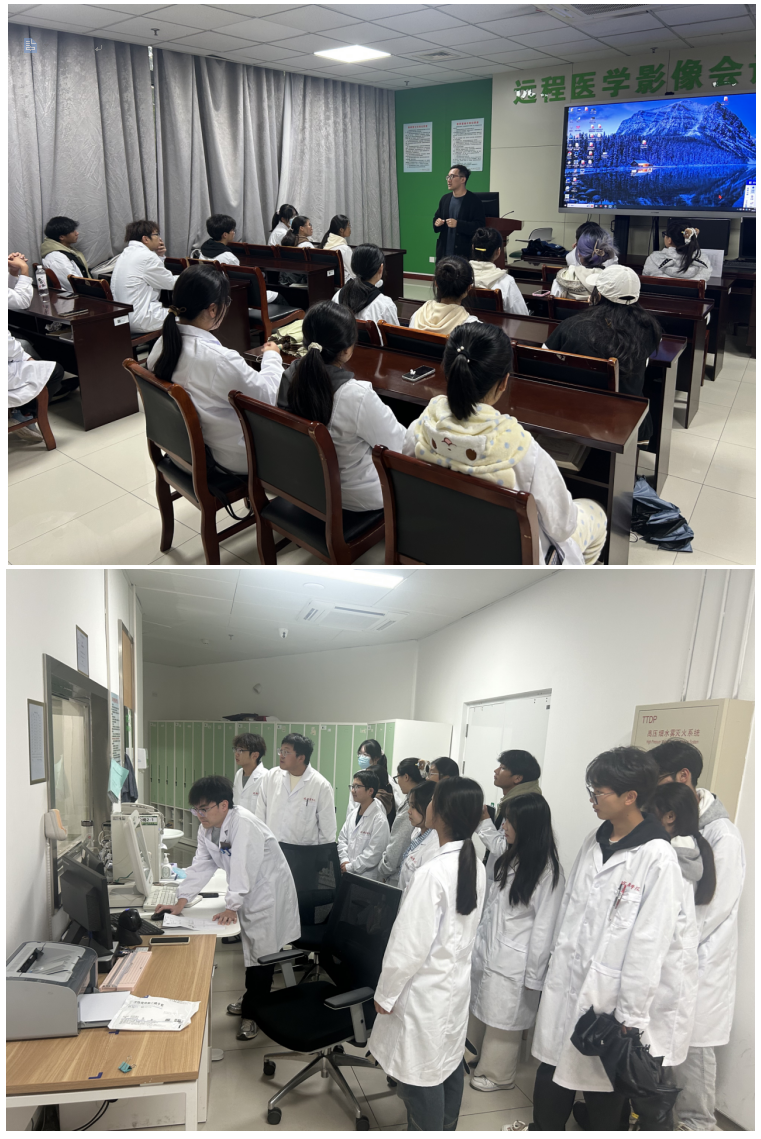 在弋矶山医院,老师们向生物医学工程专业新生解读了专业重要性,通过近距离接触先进的医学影像设备,同学们对设备研发与临床应用的结合有了更深刻的理解,新生们认真聆听、细心观察,不时就设备技术参数、影像质量控制等问题与医护人员交流探讨,现场学习氛围浓厚。在影像科的DR室、CT室、核磁共振室等核心区域,老师们为医学影像技术专业新生详细讲解了各类影像设备的工作原理、操作规范及维护要点,演示了从患者检查预约、体位摆放、图像采集到后期处理的完整流程,新生们初步掌握了影像检查的基本操作逻辑与临床服务规范。