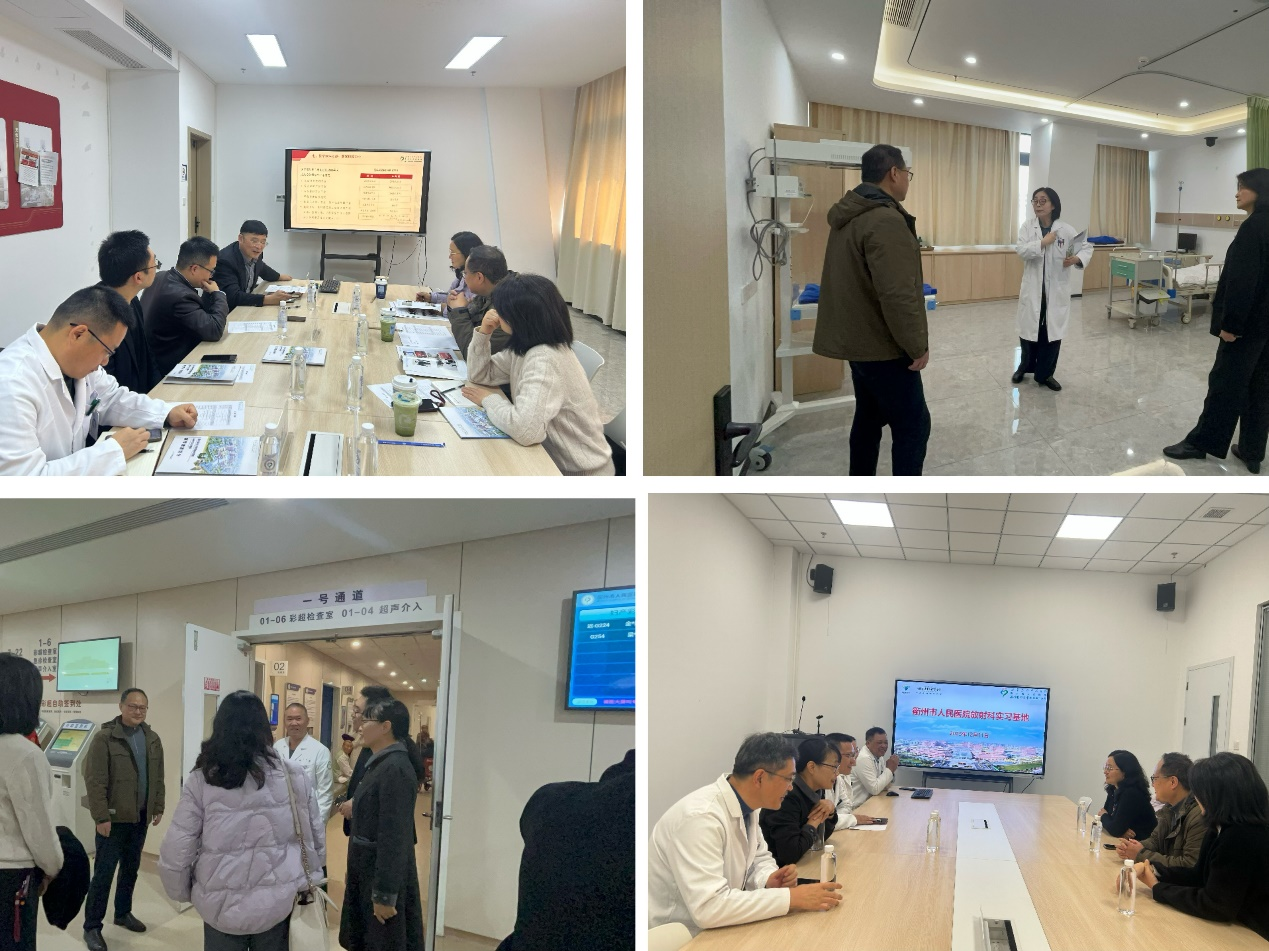 为拓展优质实习资源、搭建校地合作桥梁、精准对接人才需求, 12 月 11 日至 12 日,医学影像学院院长赵劲松、麻醉学院党委书记崔晓霞、医学影像学院副院长江峰、医学影像学教研室副主任俞咏梅、实习年级辅导员叶兰一行 5 人赴衢州走访四省边际中心医院(衢州市人民医院)和衢州市柯城区府山街道社区卫生服务中心,就潜在实习基地建设、人才供需对接等事宜展开深度洽谈。