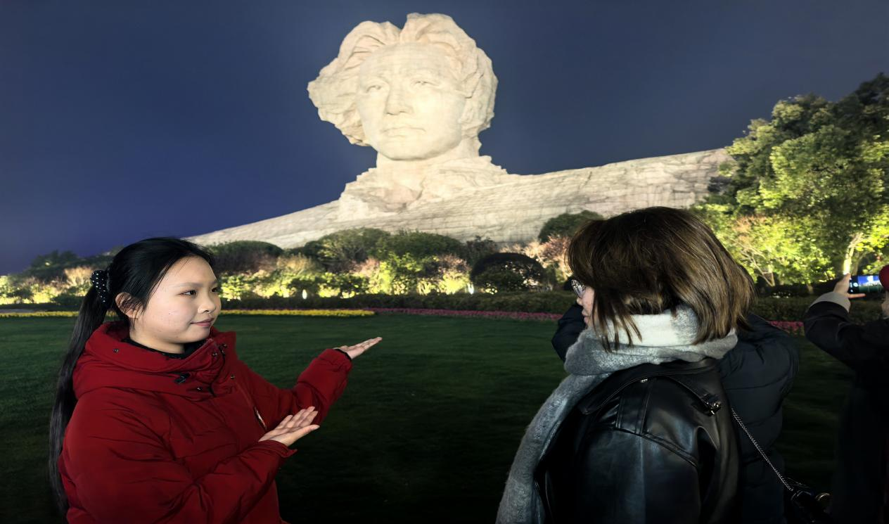 从湘江之畔到昆仑山下,队员们在红色地标处将规范语言推广与红色文化宣讲深度融合,让革命情怀随雅言细语流淌。在湖南长沙橘子洲头,队员们以青年毛泽东艺术雕塑和问天台为核心,提前整理史料、打磨讲解词,为游客讲述橘子洲的革命历史与《沁园春·长沙》的创作背景,深情朗诵经典词句,让规范语言成为传递革命情怀的重要载体。