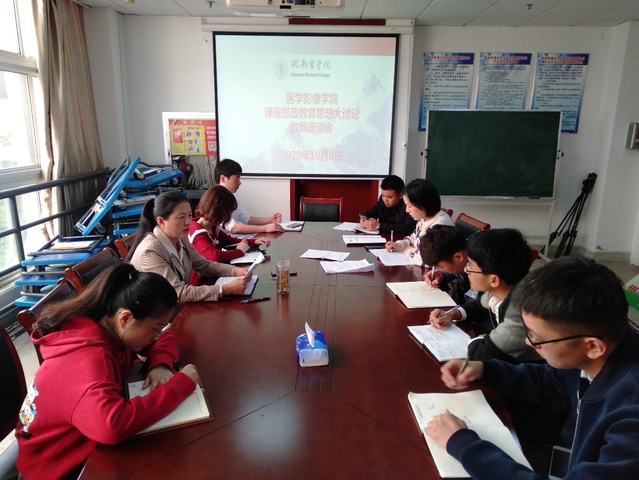为进一步贯彻落实《皖南医学院关于开展2020年课程思政教育思想大讨论的通知》(校政〔2020〕45号)文件要求,10月9日医学影像学院召开课程思政教育思想大讨论教师座谈会。医学影像学院党委书记、副院长张建英主持会议,学院青年骨干教师参会。