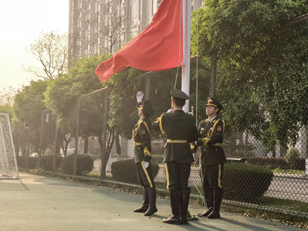 清晨七点,晨曦初现,全体师生列队肃立,仪式准时开始。国旗护卫队迈着铿锵有力的步伐,护送五星红旗庄严入场。伴随着雄壮激昂的《义勇军进行曲》,鲜艳的五星红旗迎着朝阳冉冉升起,全体师生行注目礼、高唱国歌,嘹亮歌声响彻校园。