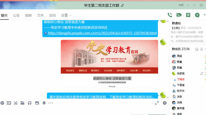 党史学习教育启动以来,学院党委精心打造“指尖上”的移动课堂,通过新媒体向全体党员、积极分子分享红色故事,以图文、音频、视频等形式让师生“云探访”红色足迹、“云体验”峥嵘岁月,感知中国共产党人的坚定信念和价值追求,领悟中国共产党人的初心与使命。在微信公众号上开设了党史知识等专栏,定期发布党史知识内容、举办党史知识问答、推出英雄人物的革命斗争故事等。通过“指尖上”的课堂,大家将党史学习学在日常、学在随时、学在随地,将党史学习的大课题变成人人参与的小载体,党员和积极分子在党史教育中得到浸润。